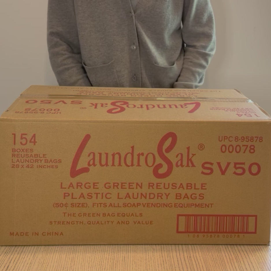 At Norton Supply, with over 75 years of dedicated service to the laundry and dry cleaning business, we understand that providing convenience and durability for your customers is essential to a successful operation. That's why we proudly offer the LaundroSak SV50 Coin Vend Laundry Bag, a heavy-duty, reusable solution designed for seamless integration into your coin-operated vending machines. This robust laundry bag provides your patrons with a hygienic and exceptionally easy way to transport both clean and dirty clothes, enhancing their overall experience at your facility. Crafted from materials over twice as thick as standard bags, the LaundroSak SV50 is built to withstand repeated use, offering superior puncture and tear resistance. Its generous capacity can comfortably hold a substantial load of laundry, making it an indispensable item for any laundromat customer. Each case contains 154 individual bags, specifically sized and packaged for efficient dispensing from commercial laundry vending machines, ensuring you're always ready to meet customer demand.